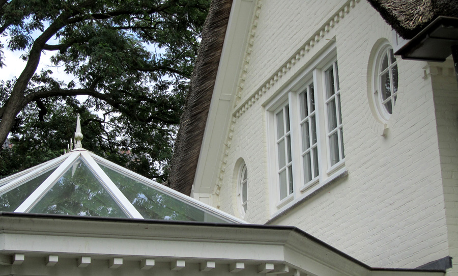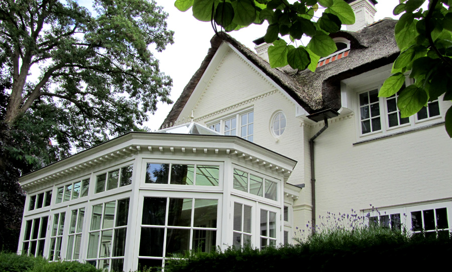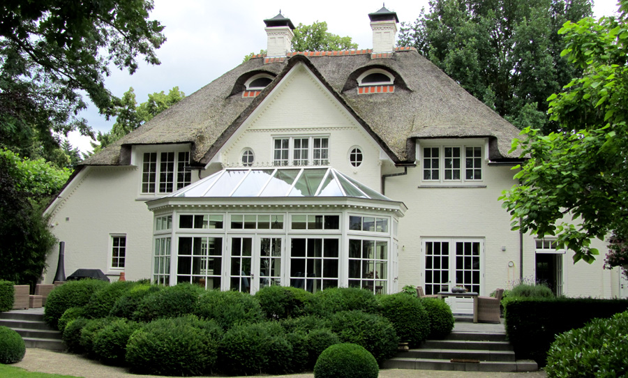 De villa is uitgebreid door het aanbrengen van een riante serre aan de achterzijde. Het