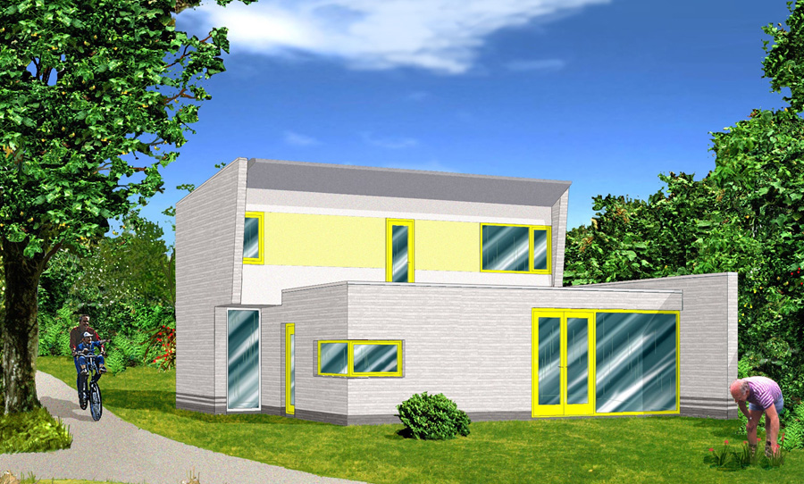 De basisgedachte van onze visie op de vakantiewoning is vertaald in het architectonisch