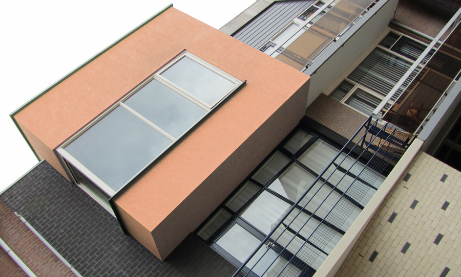 laag bereiken waar zich het dakterras bevindt over de volle oppervlakte van de woning.