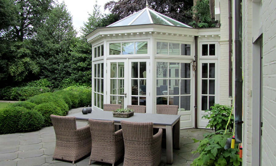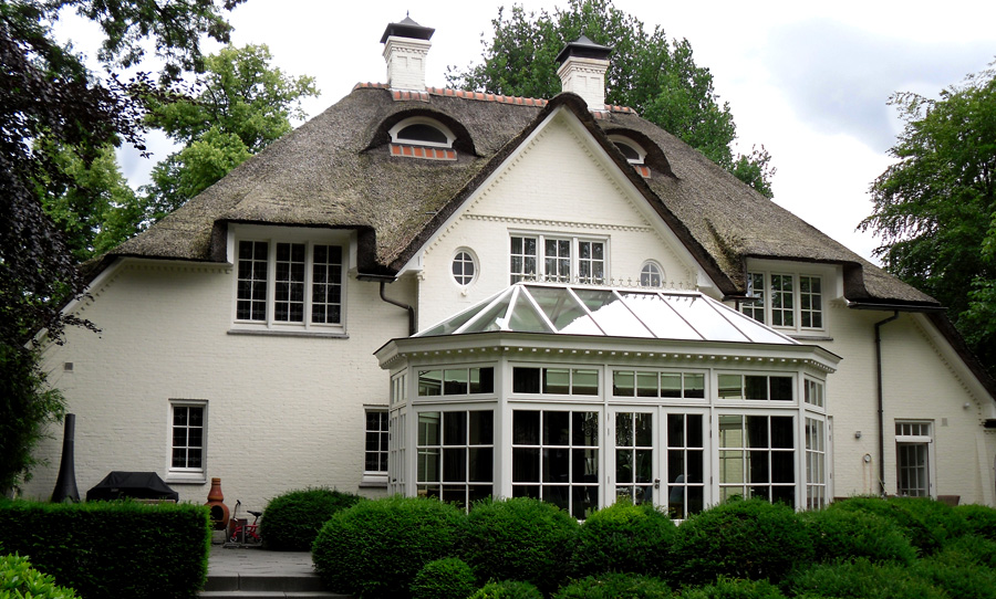 De villa is uitgebreid door het aanbrengen van een riante serre aan de achterzijde. Het