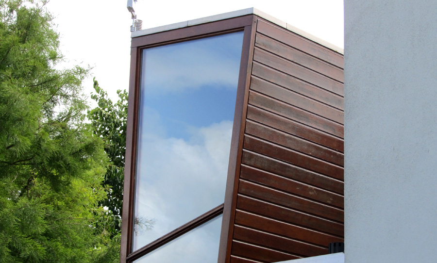 De beeldbepalende “scherf” verbindt binnen met buiten en boven met beneden.