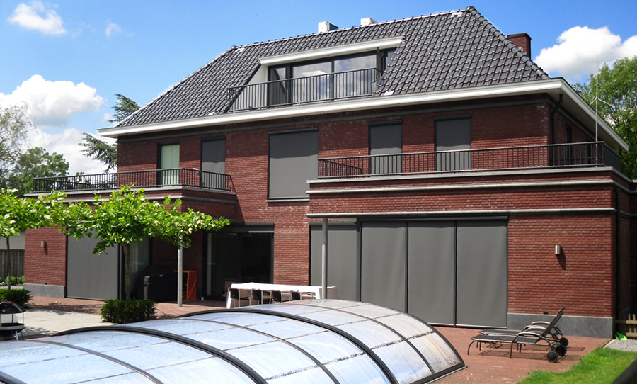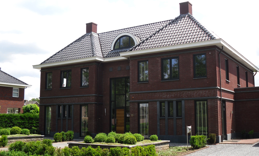 De villa heeft een klassiek Amerikaanse uitstraling met flauwe dakhellingen en grote